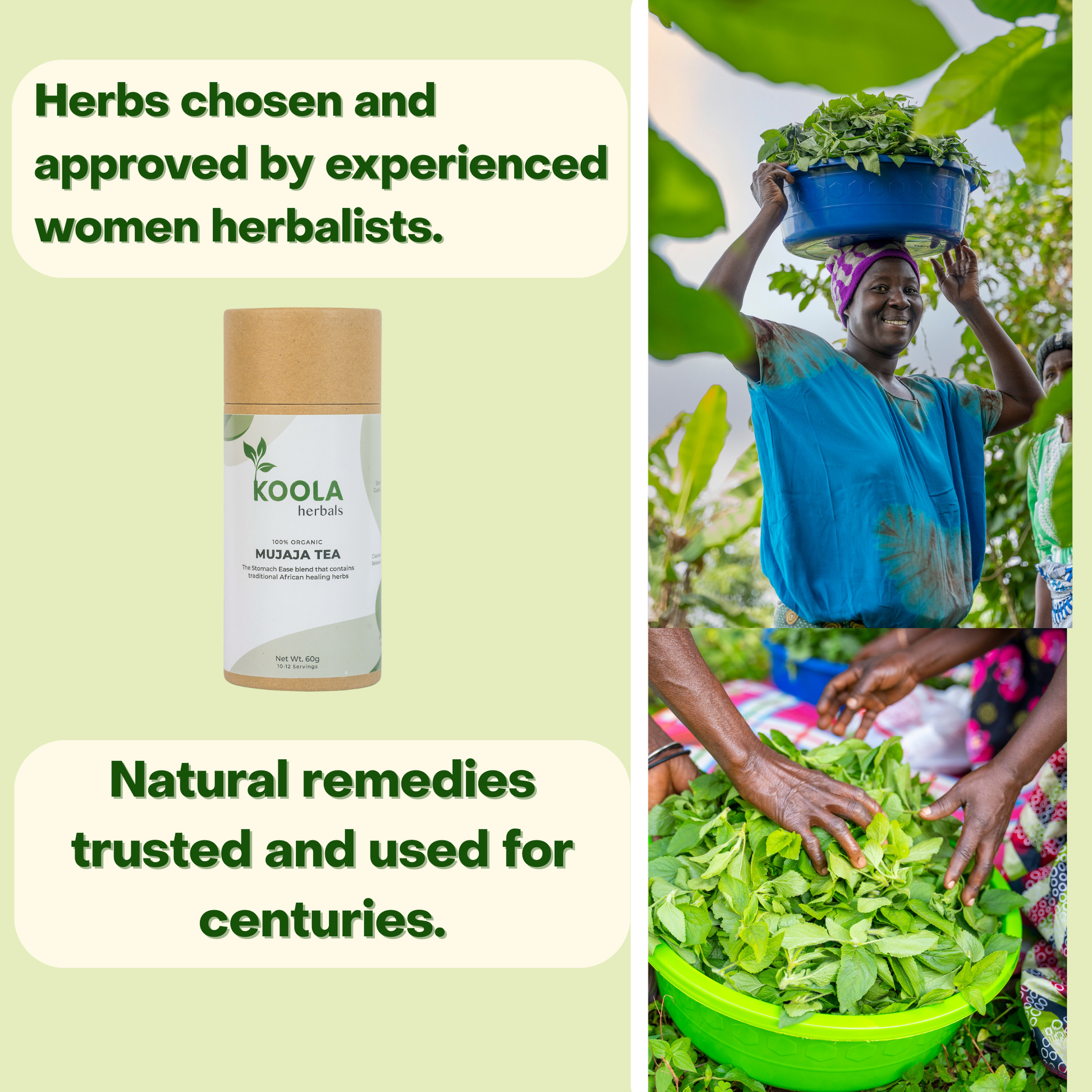 The Stomach Ease blend features traditional African healing herbs known for their soothing and nourishing properties. Ingredients such as Bidens Pilosa and Hoslundia Opposita support digestion and help calm an upset stomach with their natural antimicrobial compounds.